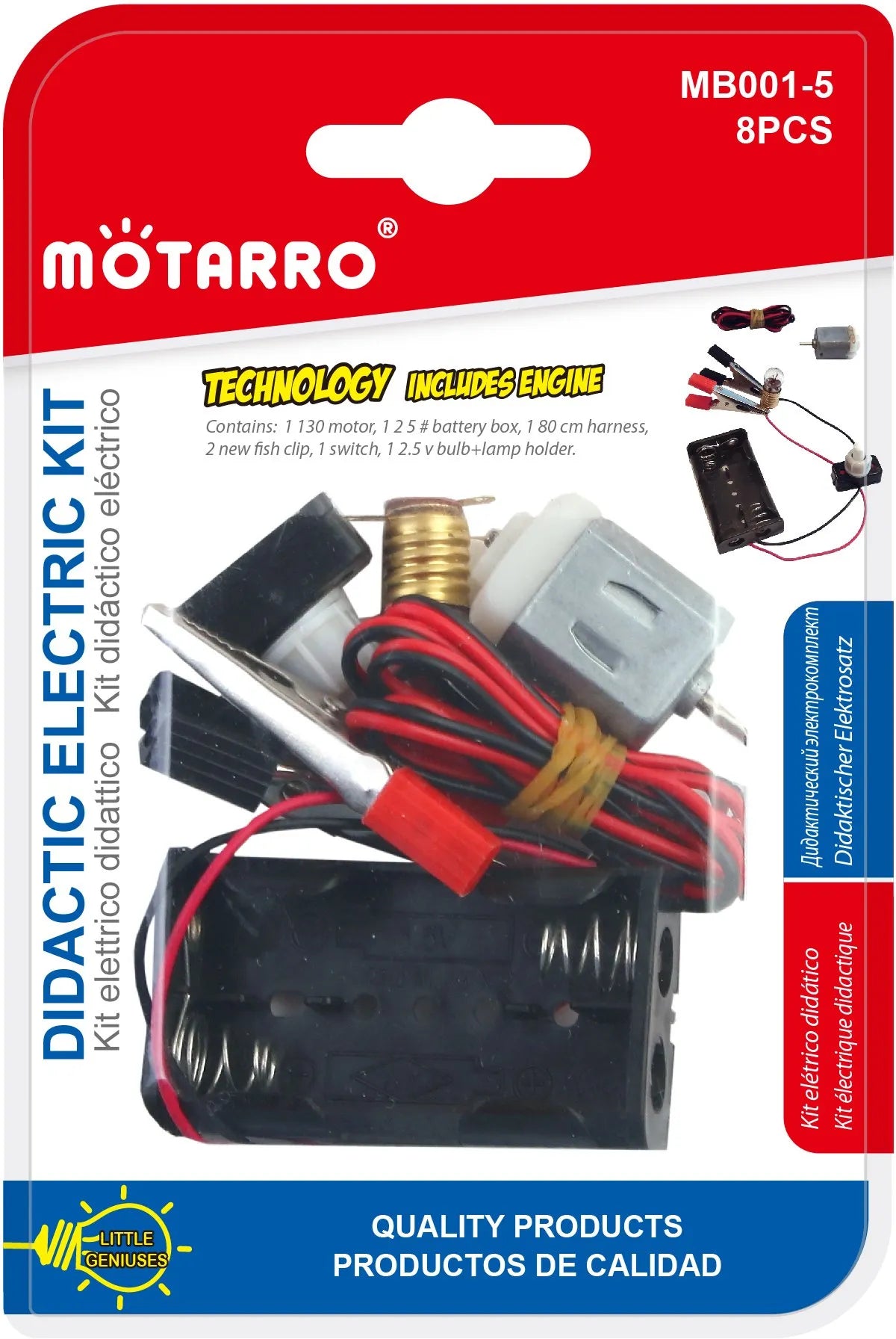 Motarro MB001-5 Didactic Electric Science Project Kit is promotes creativity and curiosity in young learners. Designed to engage kids in educational electric science projects. Encourages hands-on exploration and experimentation with electricity. Helps develop problem-solving skills and critical thinking abilities. Provides a fun and interactive way for kids to learn about electrical circuits and components. It can be used at home or in educational settings such as classrooms or science clubs. Includes 2 pieces in the set, providing multiple learning opportunities.